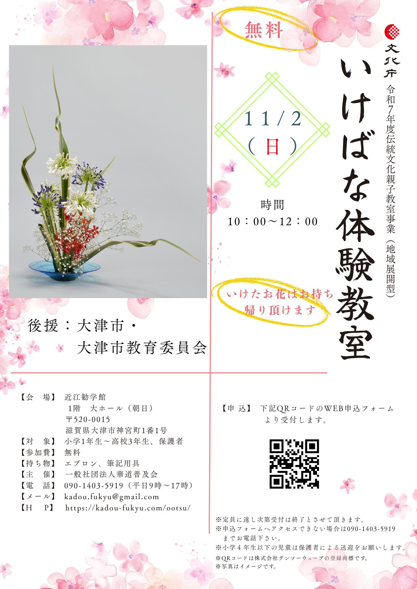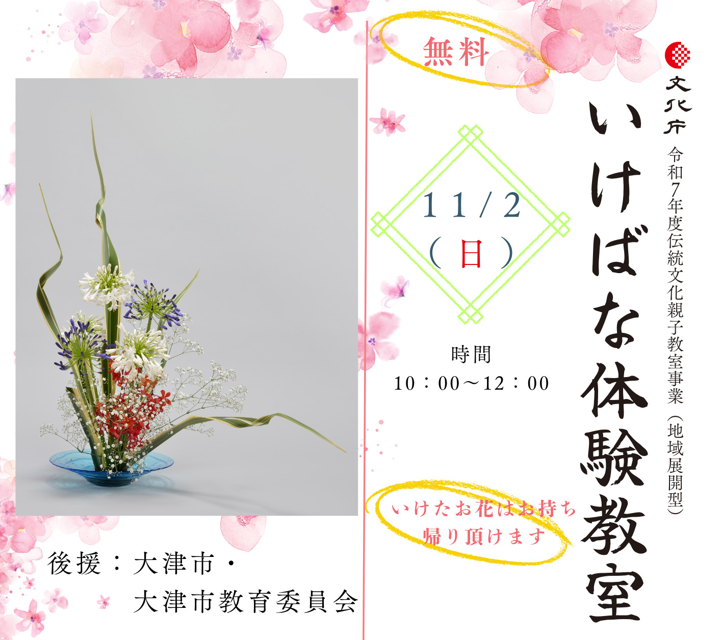 伝統文化華道体験教室事業の教室、及び関係団体のいけばな教室のご案内です。